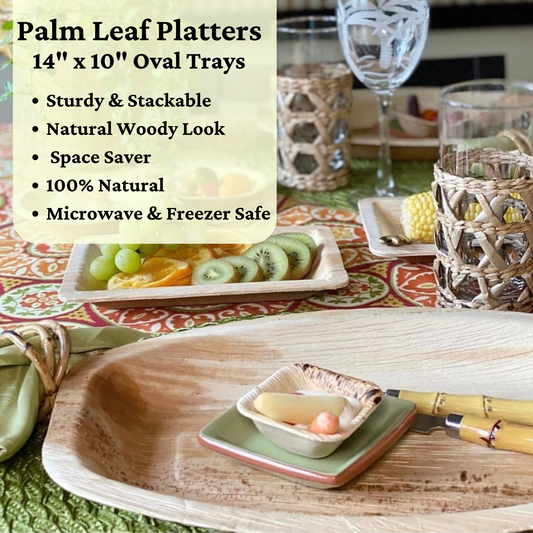 Dtocs Palm Leaf Oval Tray - 10x14 Inch Platter (10)