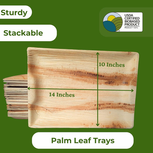 Dtocs Palm Leaf Disposable Rectangular Serving Trays 14"×10" (25)