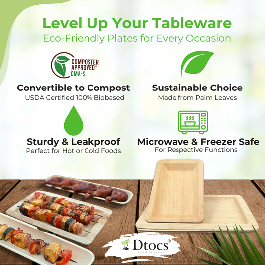 50 Party Plates | 10" Dinner (25), 7" Dessert (25) Square Palm Leaf Plates