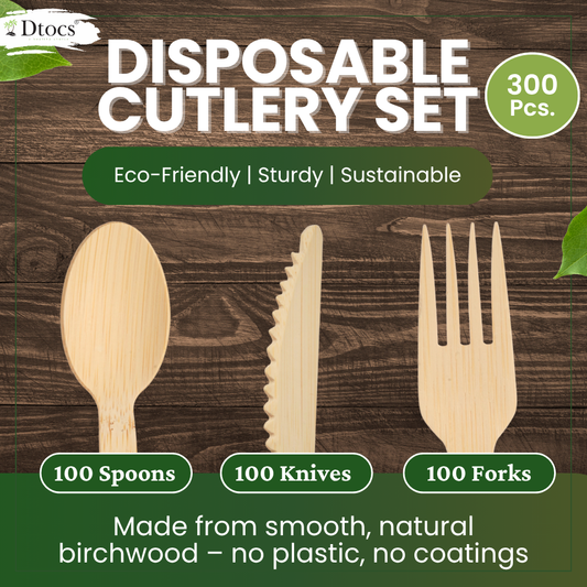 Dtocs Disposable Wooden Cutlery Set 300 Pc – Knives, Spoons, Forks 100 Each