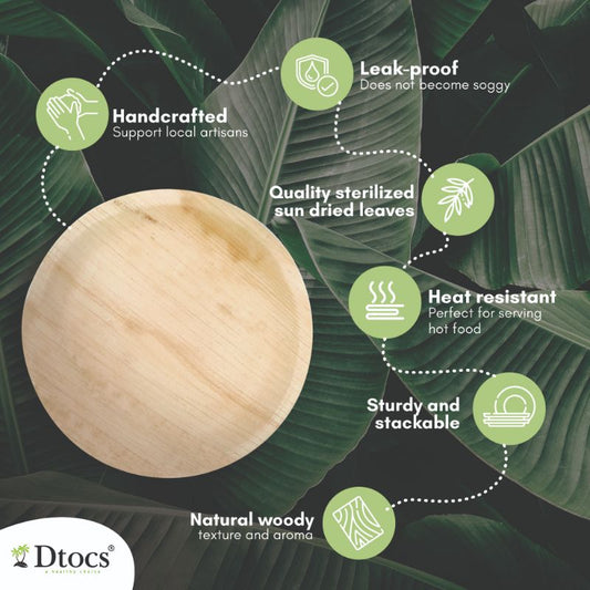 50 Party Plates | 10" Dinner (25), 7" Dessert (25) Round Palm Leaf Plates