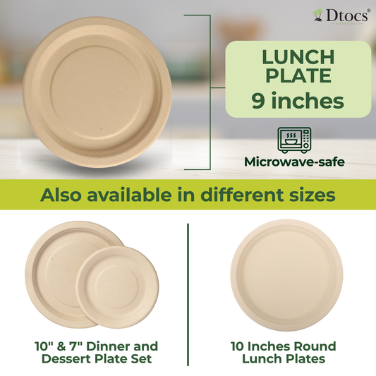 Dtocs Bamboo Fiber Plates 9 Inch Round (50 Pcs)