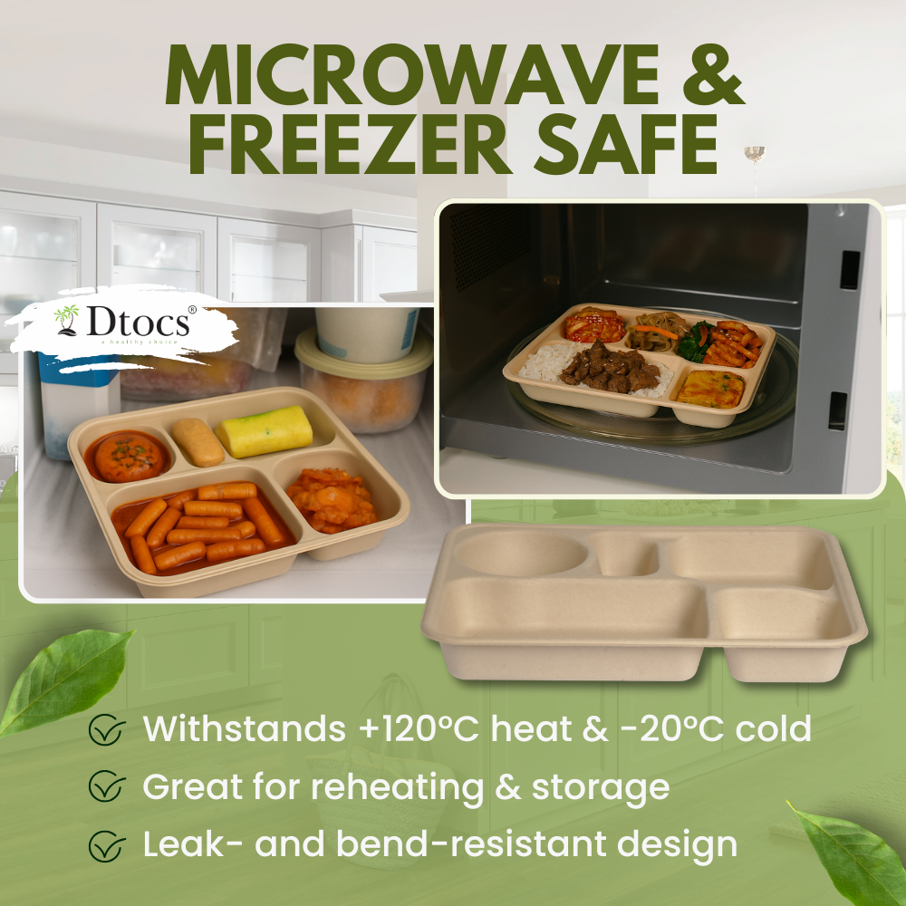 - Heavy-Duty & Microwavble Platters: These lunch trays are built to handle hot, cold, oily, or saucy foods without leaking or bending. Dtocs sturdy disposable plates are microwavble and freezable (up to +120°C / down to -20°C), making them versatile as to go plates, lunch trays, or dinner plates.