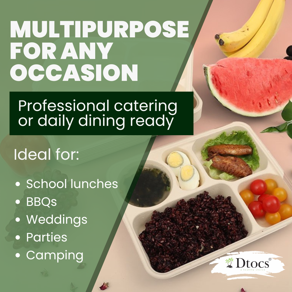 - Easily Disposable Tray: Dtocs biodegradable plates easily decompose both at home and commercially, breaking down into organic matter. An ideal choice for restaurants, schools, events, parties, catering, camping, or daily use.