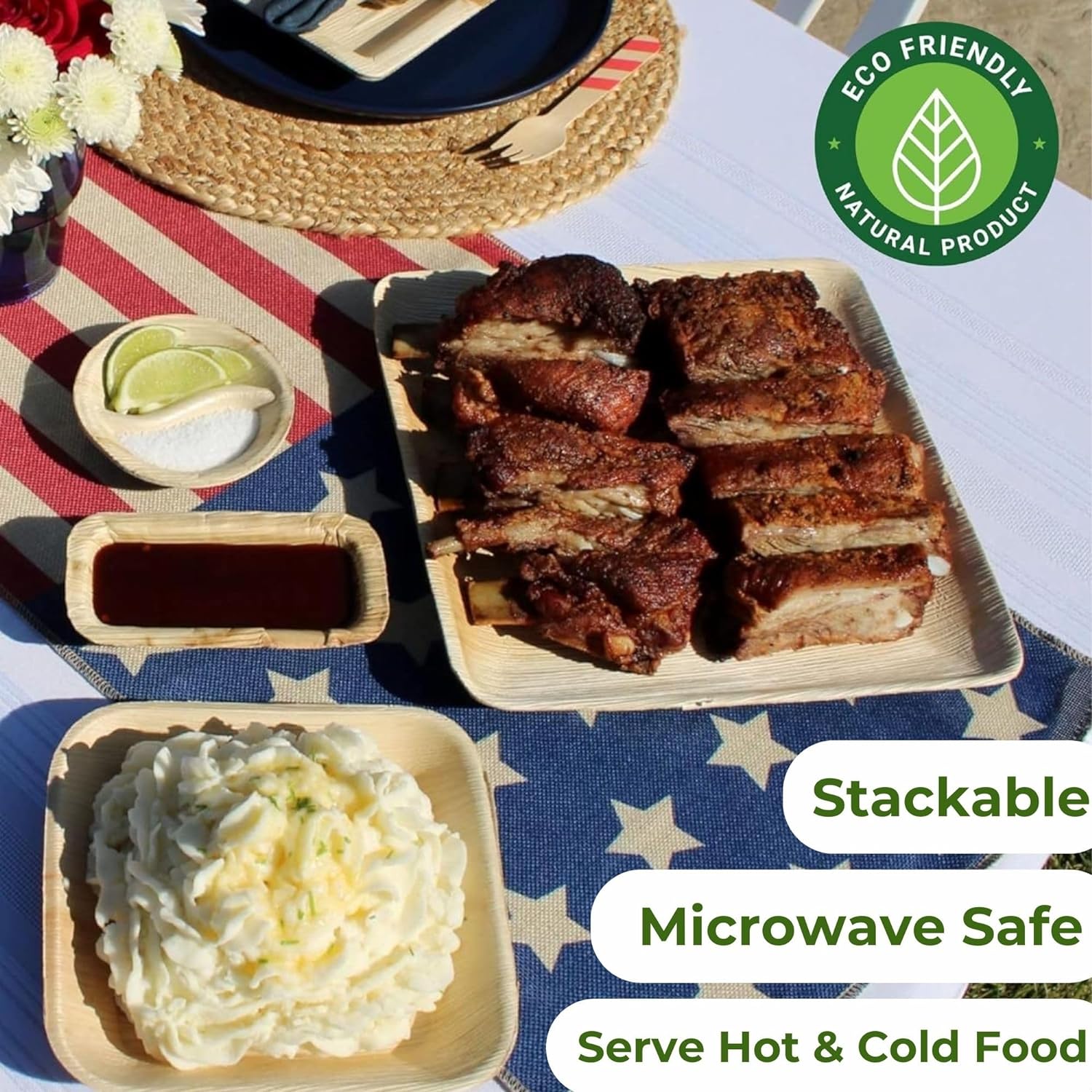 50 Sturdy Palm Leaf 8" Square Disposable Party Plates